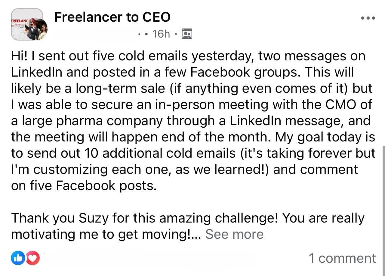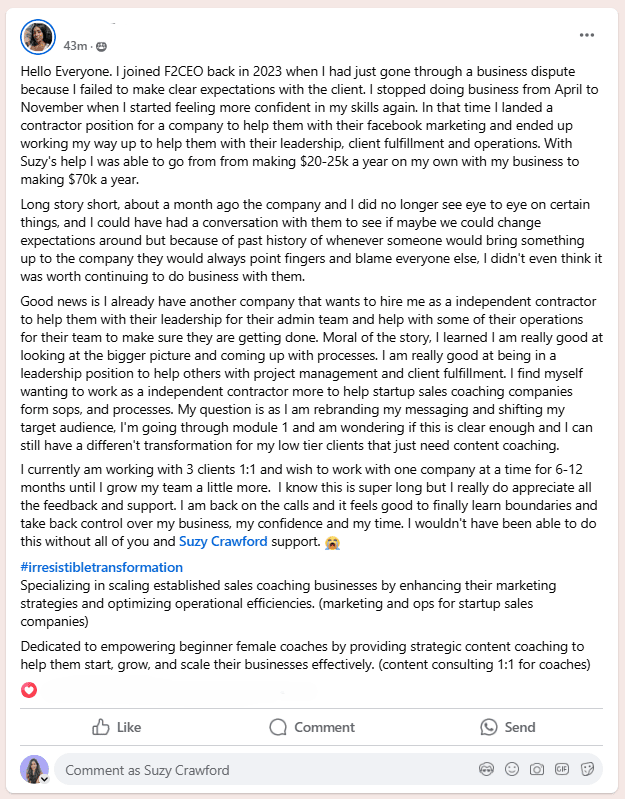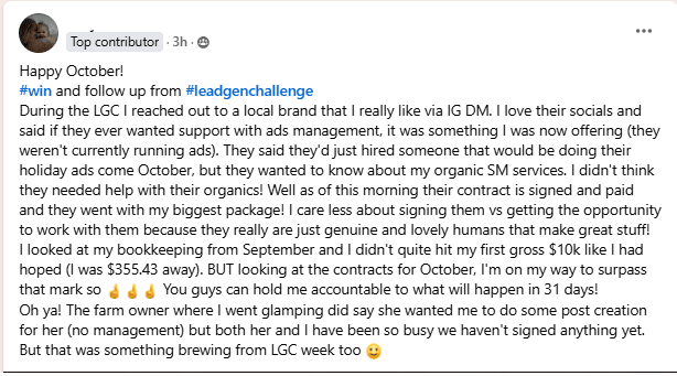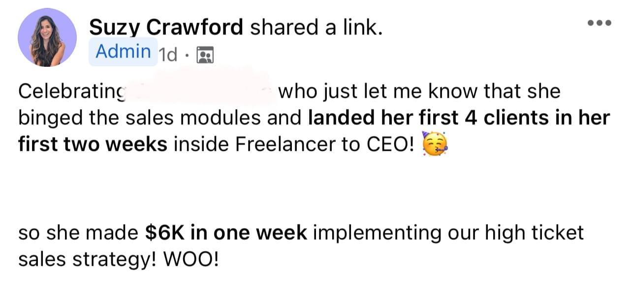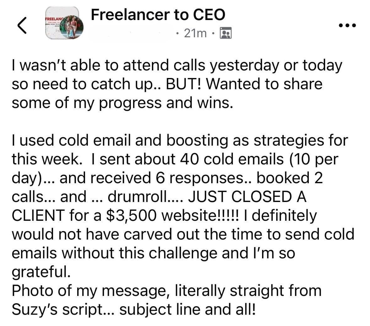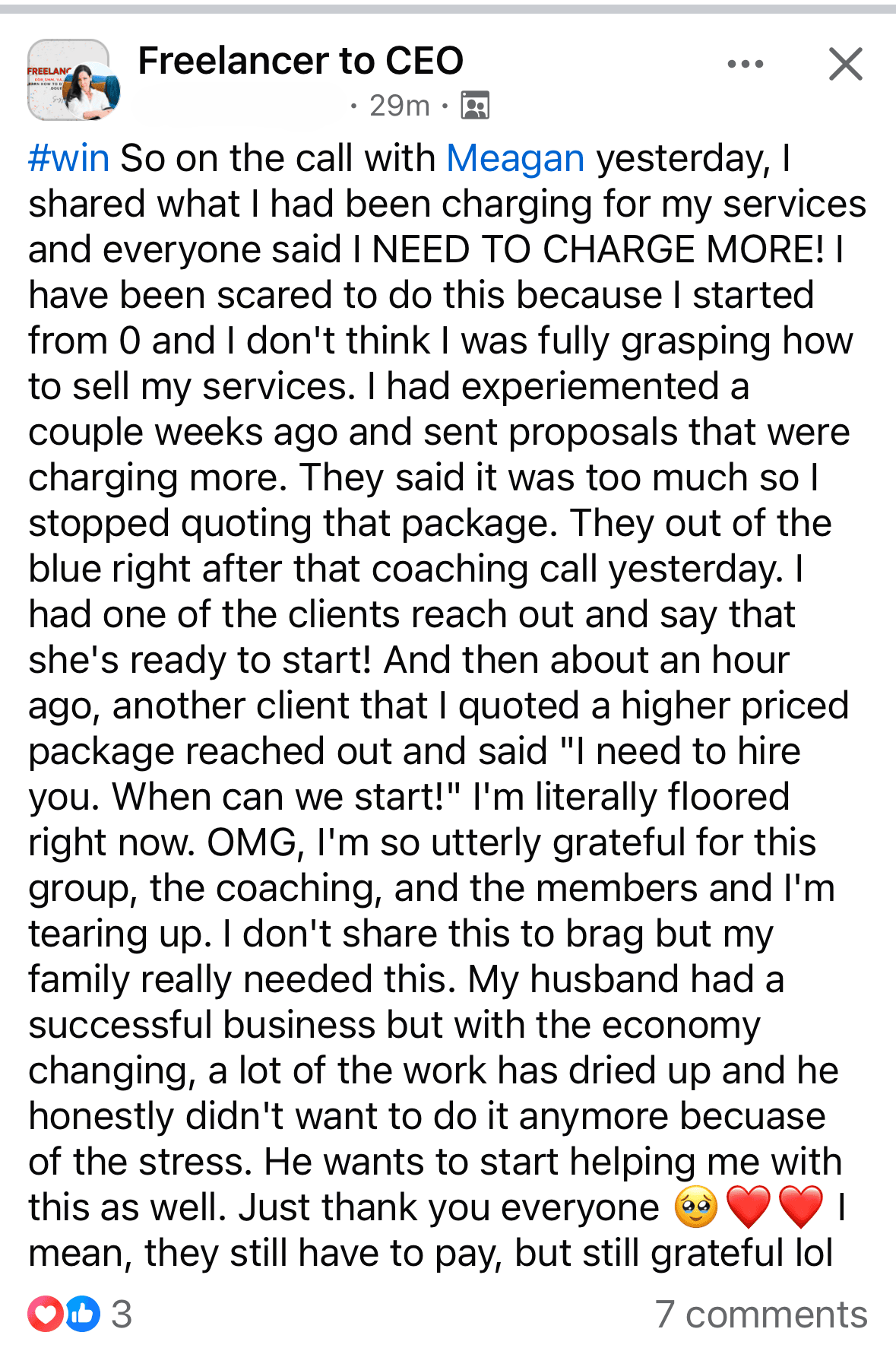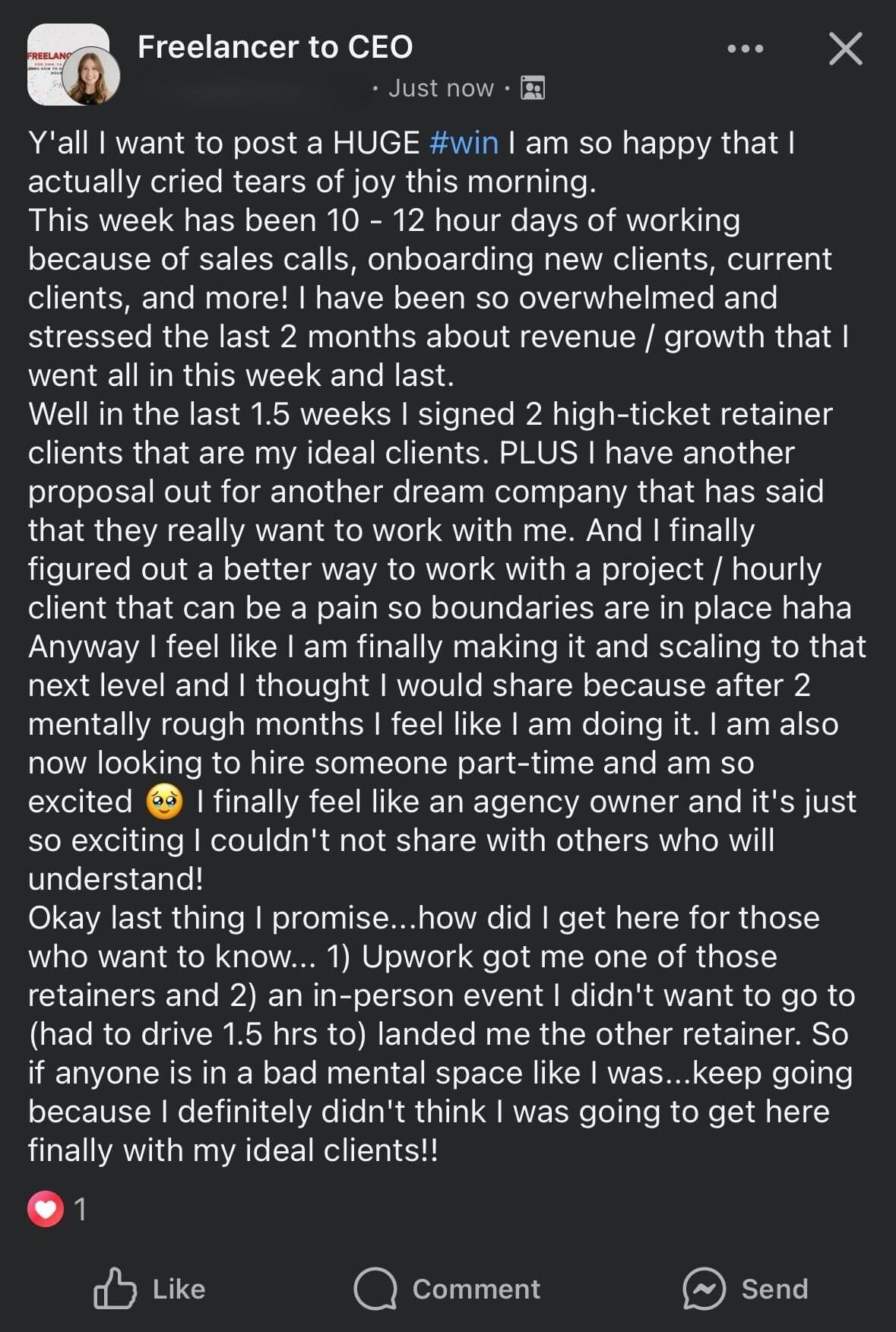 Leah has been through multiple coaching programs with no success. She started Freelancer to CEO and has built an organic IG lead gen funnel and has clients coming to HER.