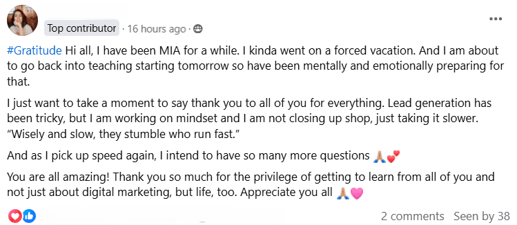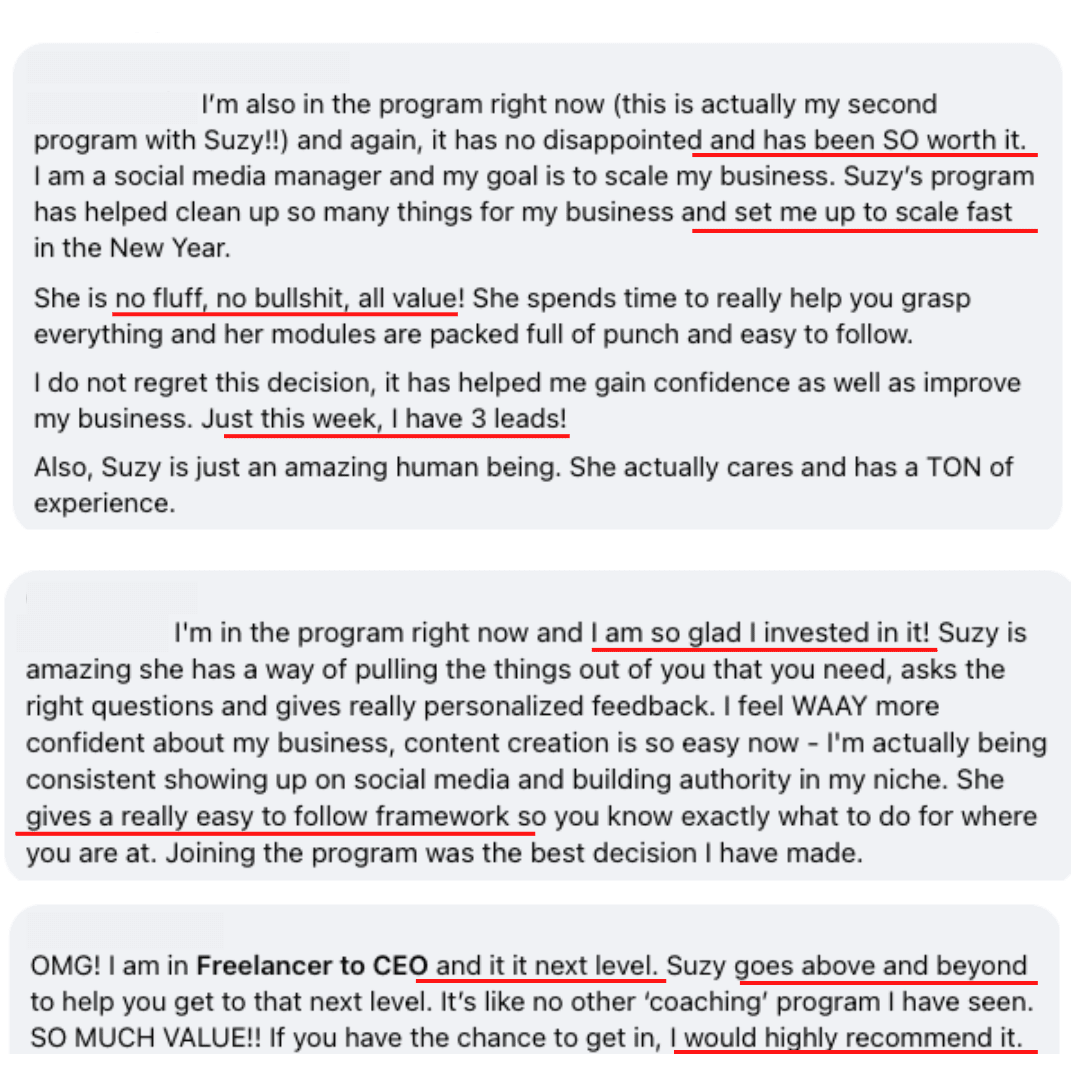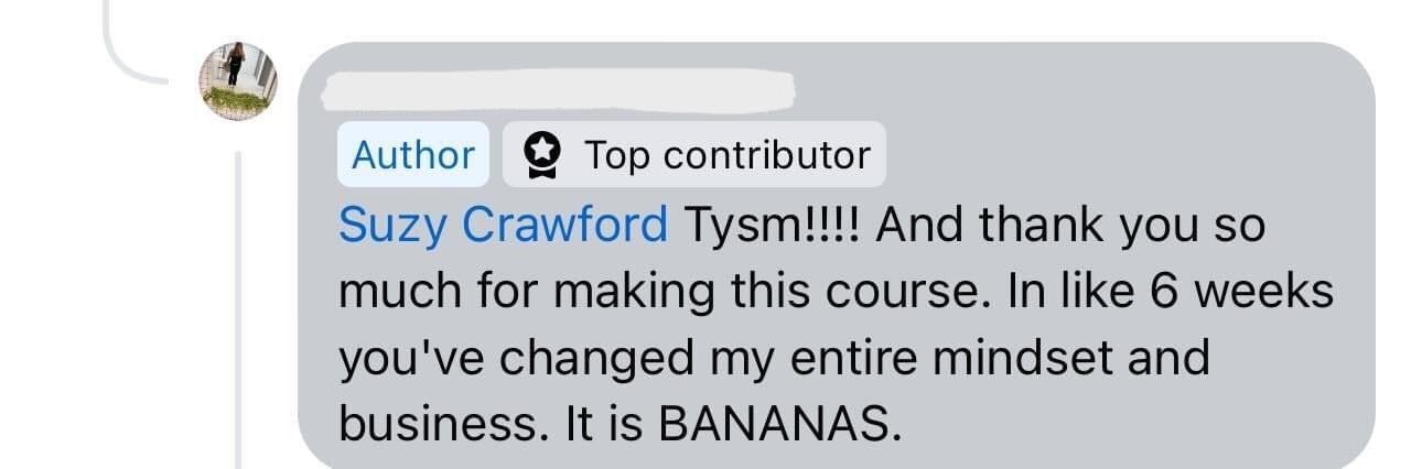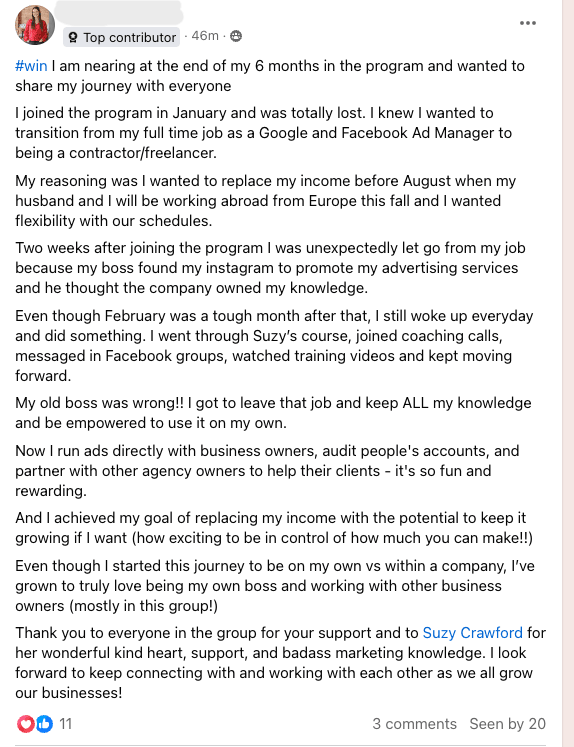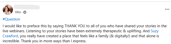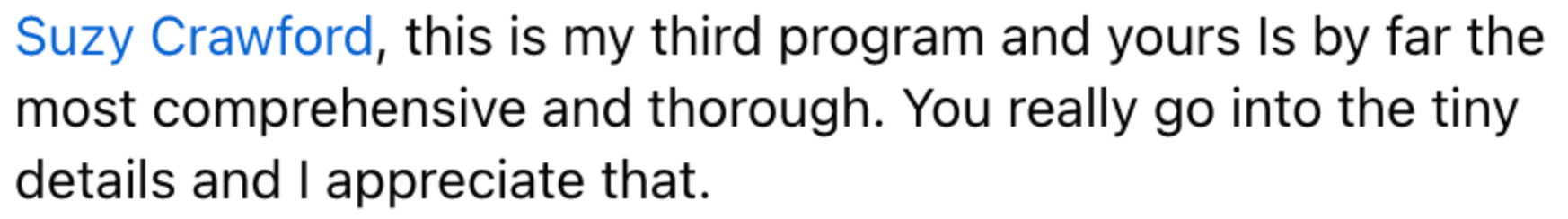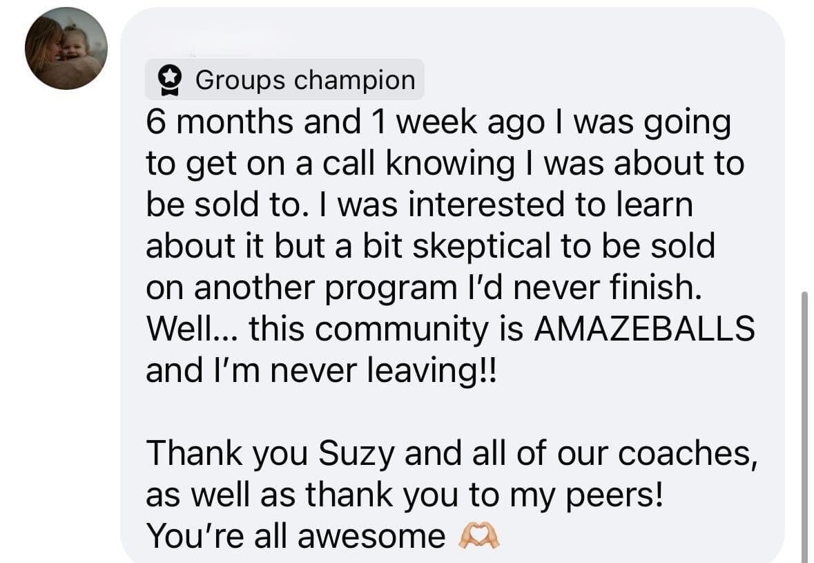 What I love about the program is the community not only is Suzy, super supportive, but everyone else in the group is super supportive as well.