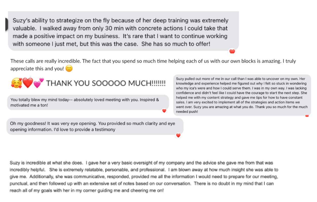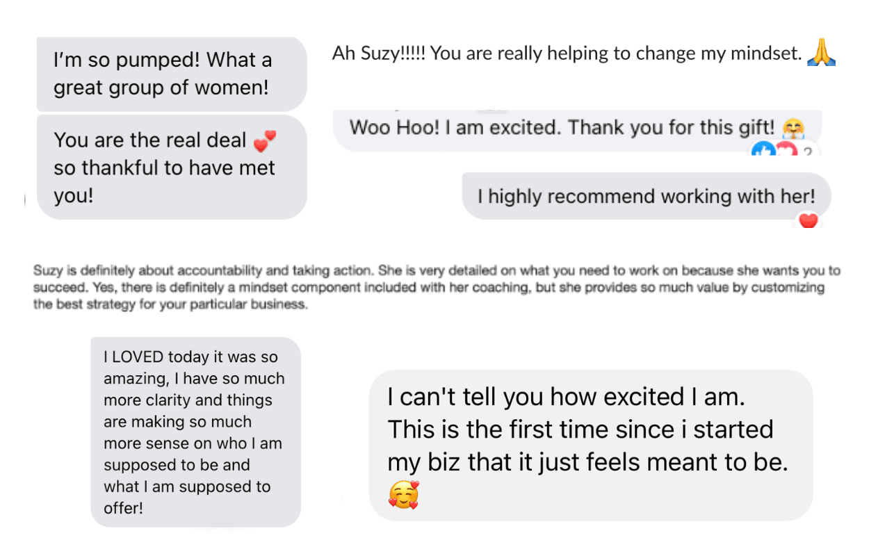 By submitting, you're giving Suzy Crawford Coaching permission to contact you through phone or text in accordance with our Privacy Policy and Terms of Service. We do not spam or sell your info - ever.