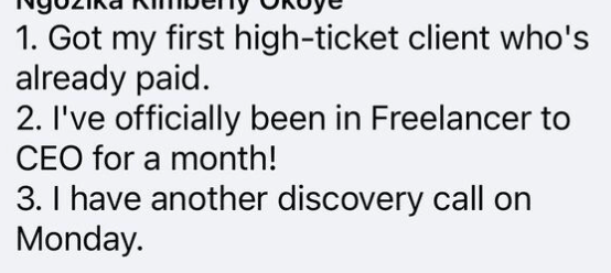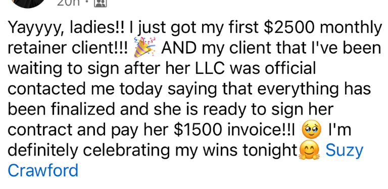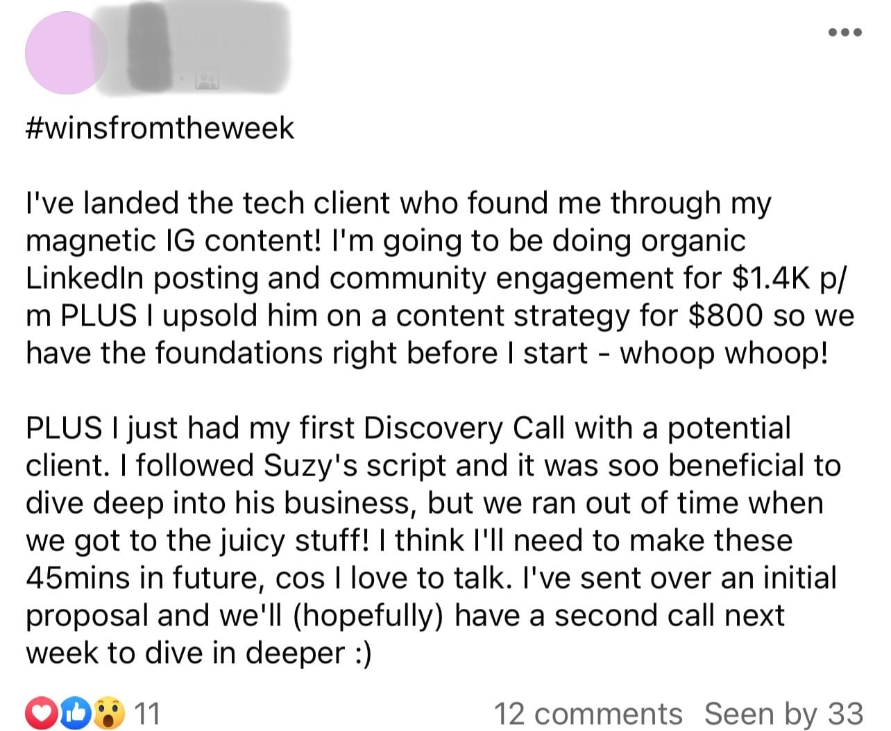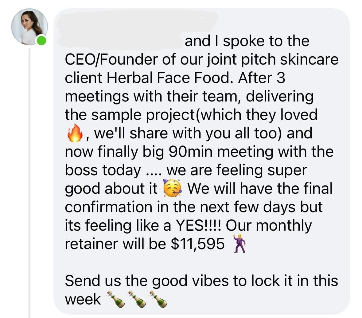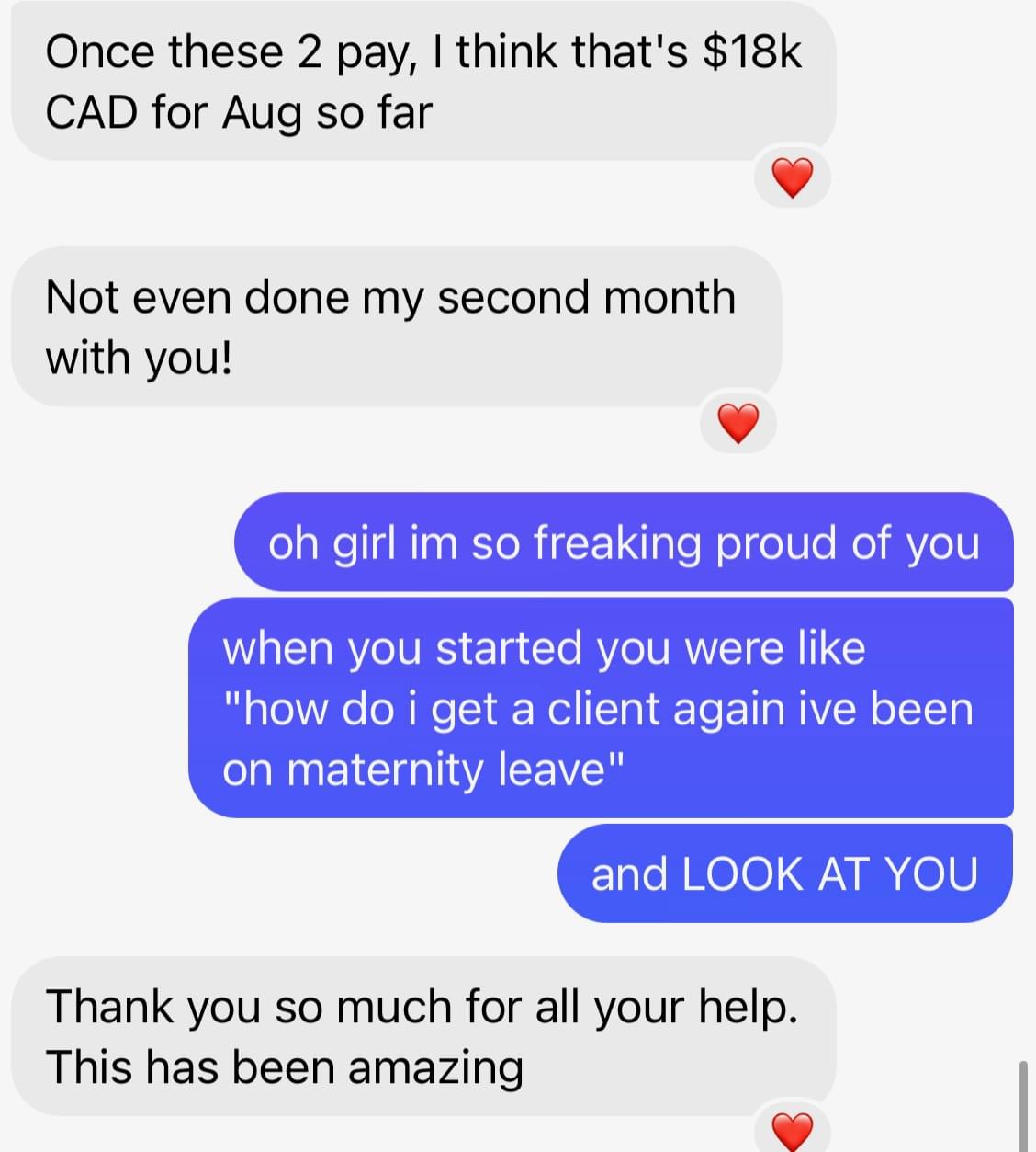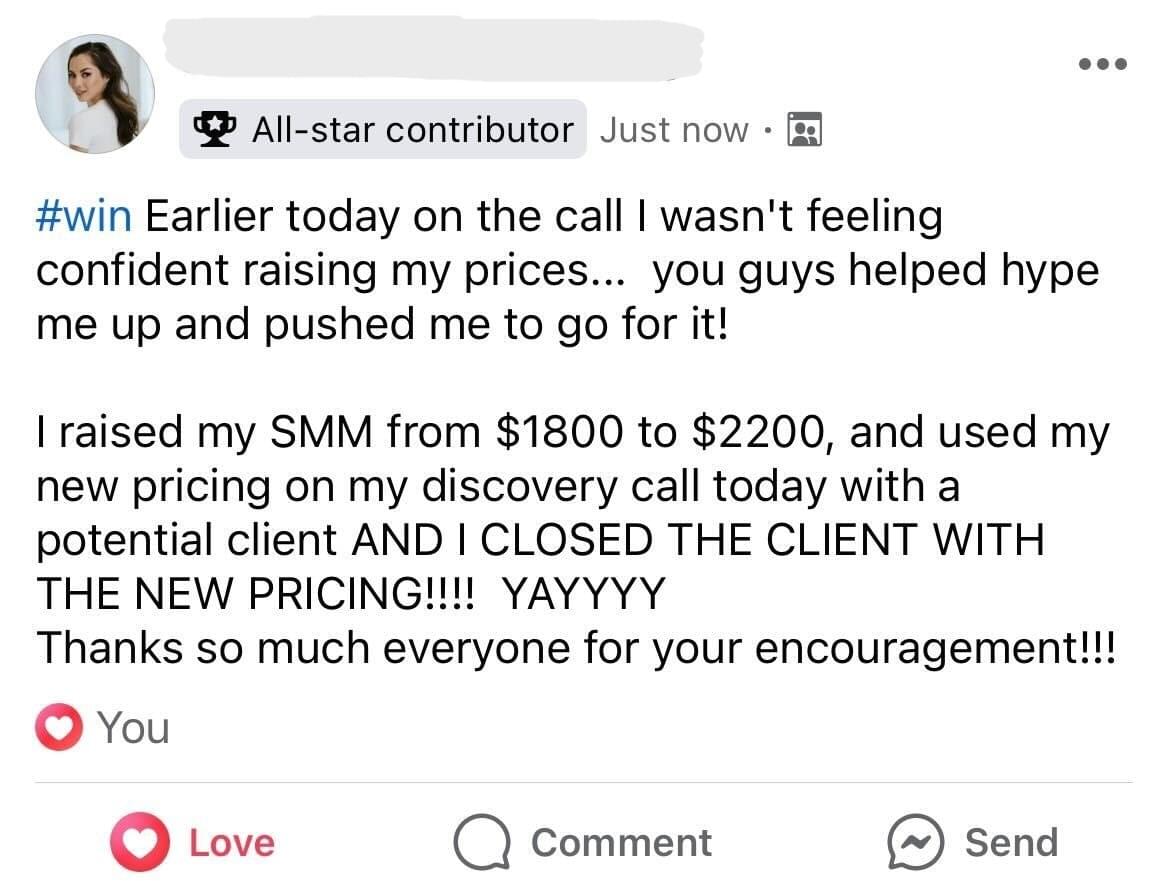 In just 2 weeks, Sabrina went from clients paying $300/month to closing $1,800/month clients.