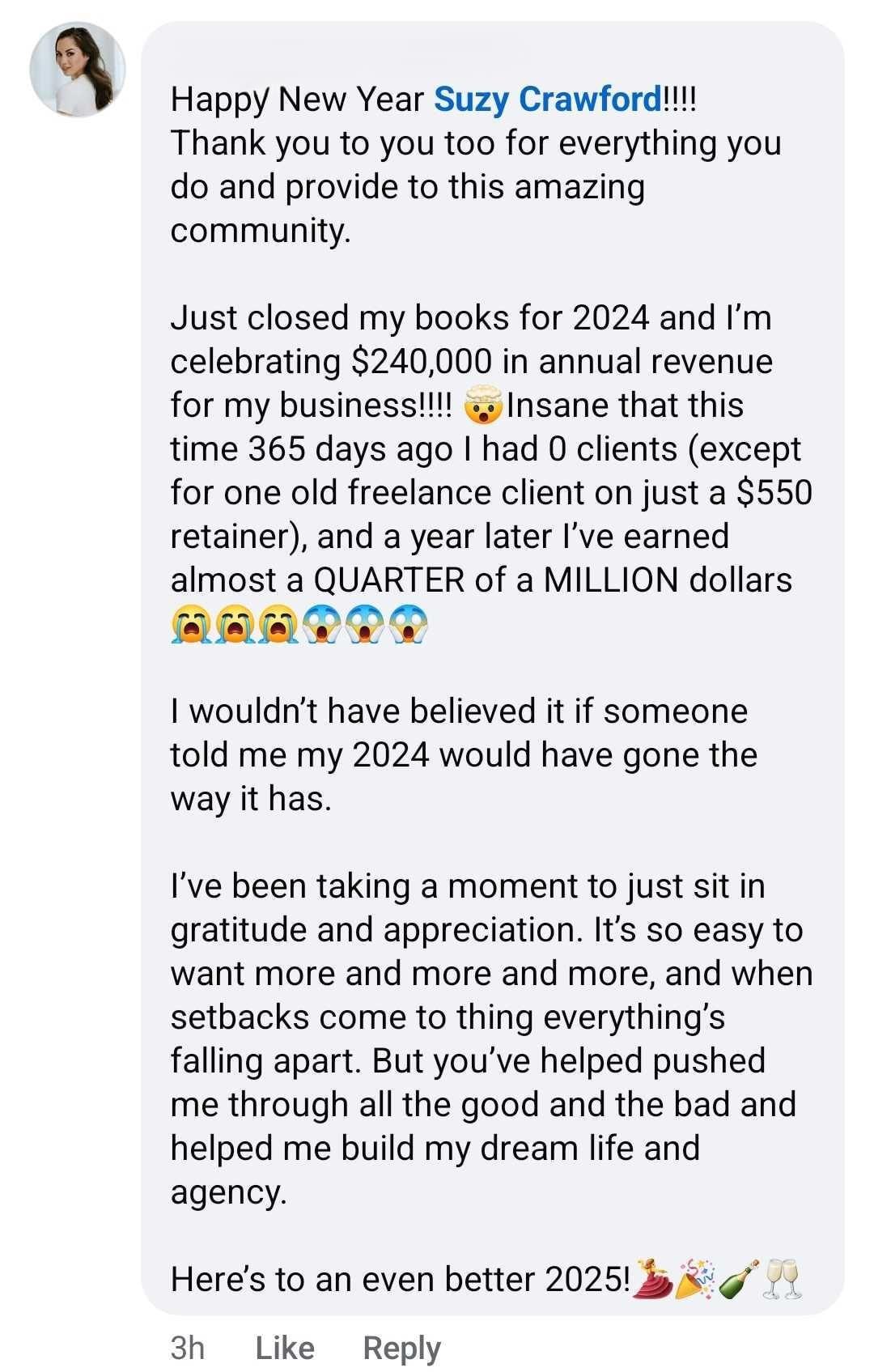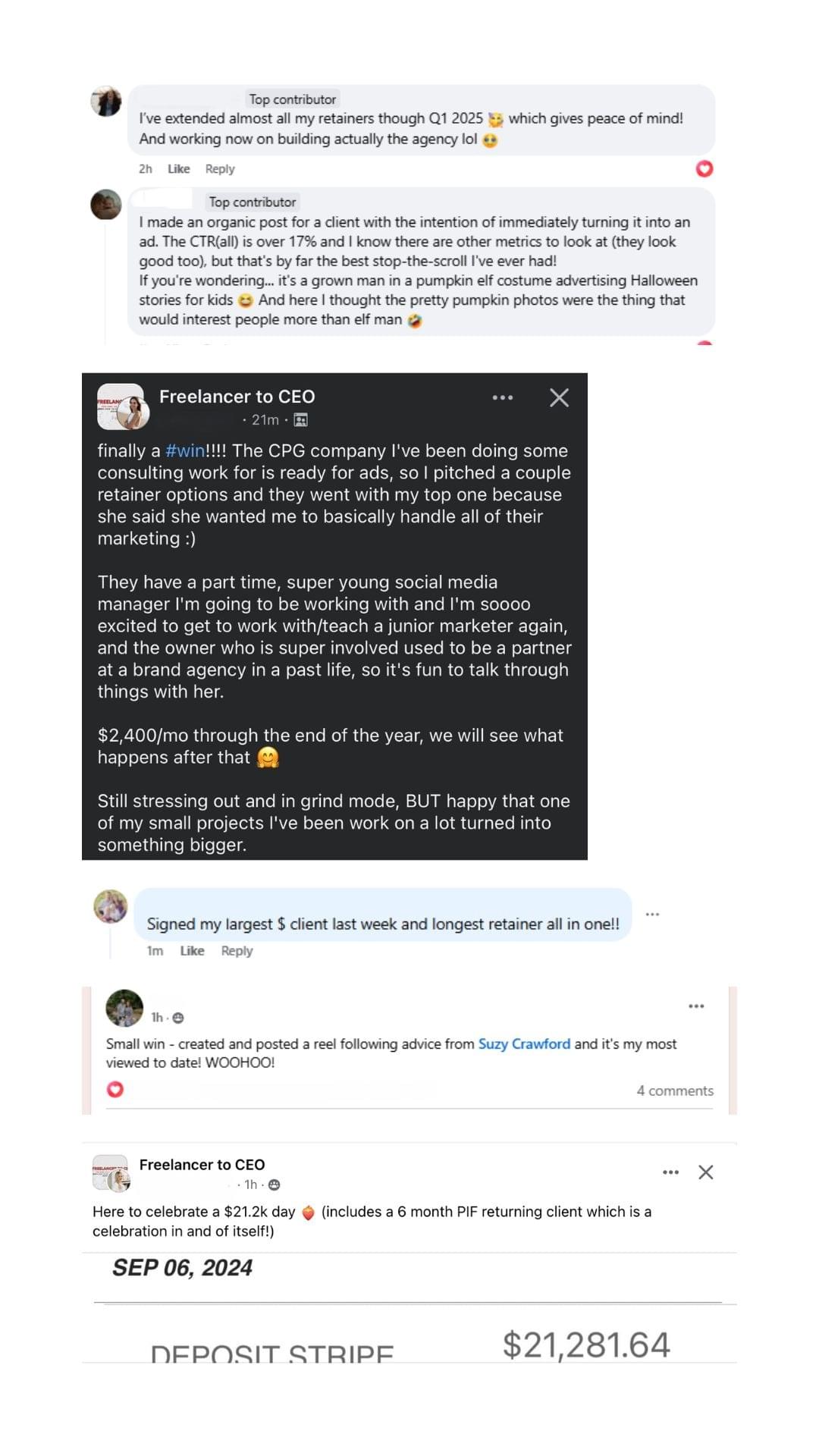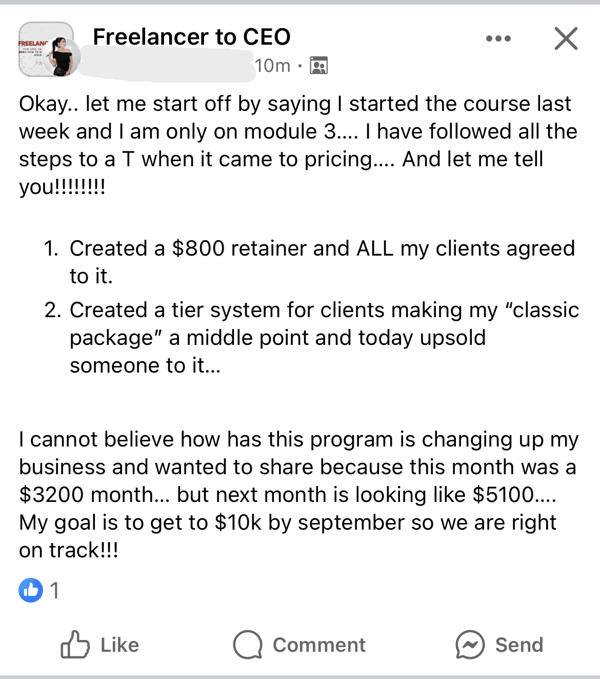 From physical therapist to agency owner - Jules surpassed 10K months quickly. "Freelancer to CEO is the perfect combination of strategy, structure, and community."